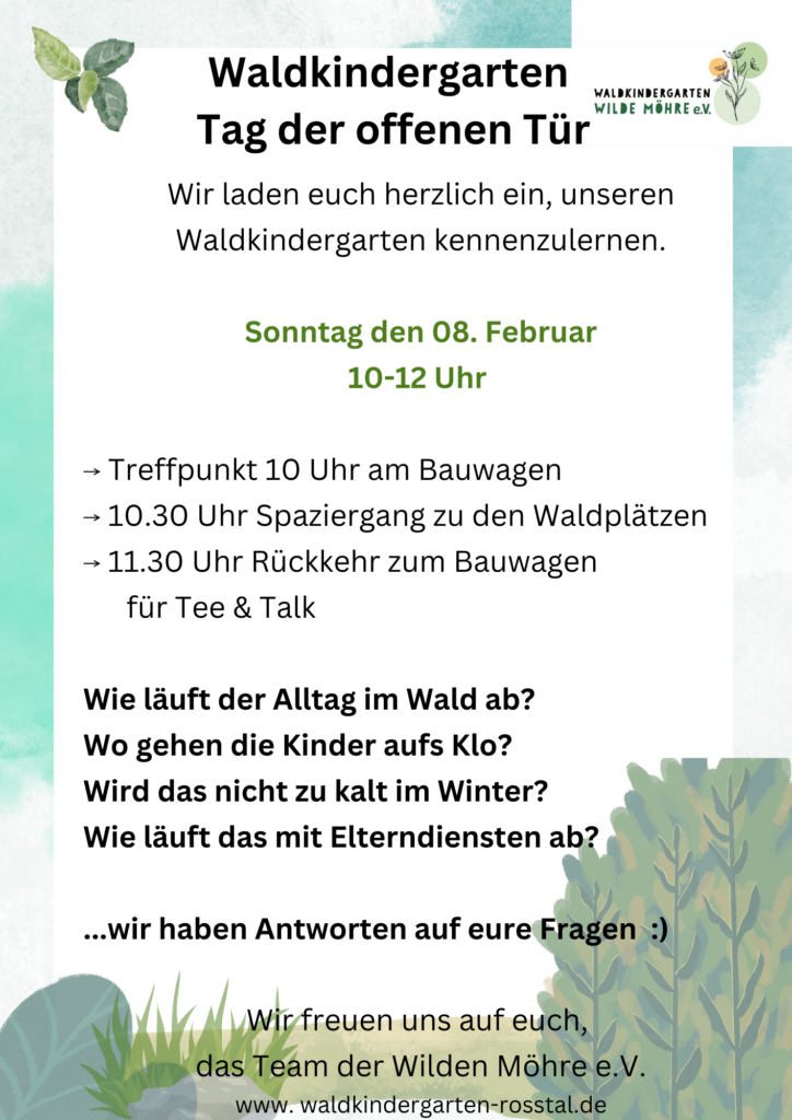am 01. Oktober 2024 hat der Waldkindergarten Wilde Möhre den Betrieb aufgenommen, und zwar im schönen Örtchen Buttendorf.